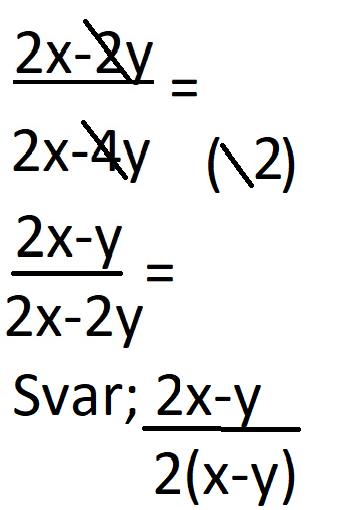 Skall det vara samma uttryck på båda raderna? I så fall är det fel. Du kan bryta ut faktorn 2 i täljare och nämnare i det översta uttrycket och förkorta bort det. Det nedre uttrycket går inte att förkorta (om man inte vill ha bråk som koefficienter, och det brukar man helst undvika).