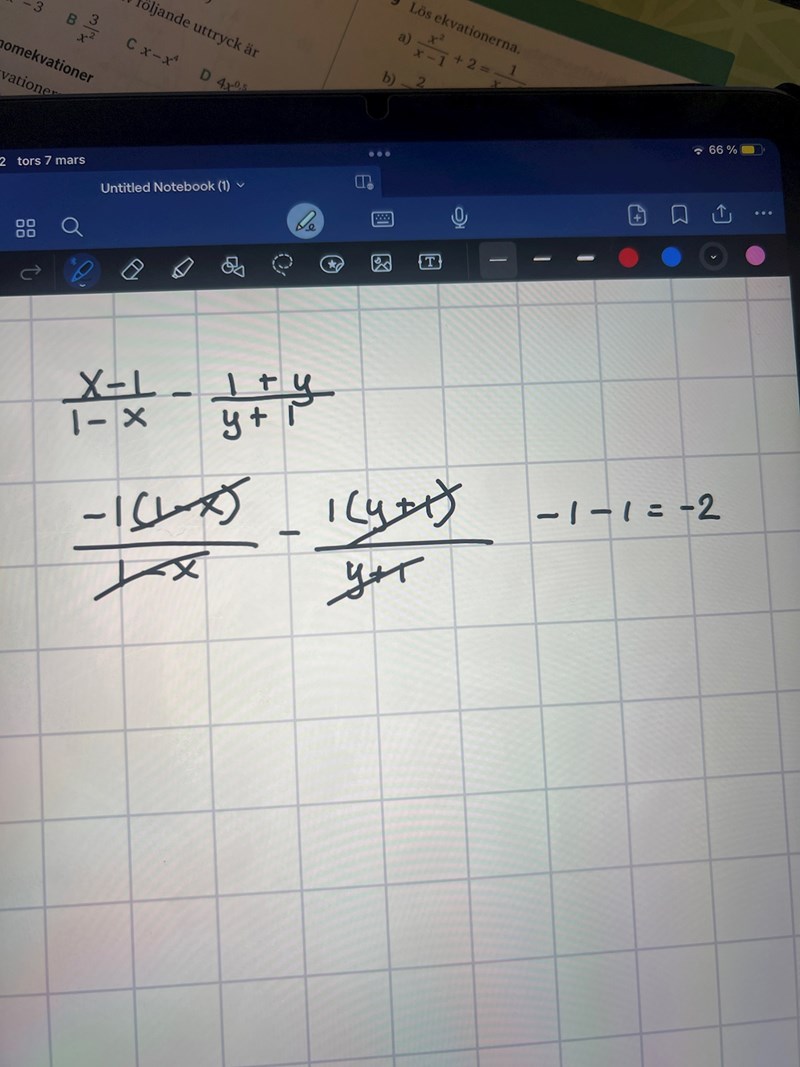 Hej! Jag har fastnat på en uppgift då jag inte förstår va den minsta gemensamma nämnaren ska var. Svaret blir -2 men förstår inte hur de går ihop :) skulle va tacksam om någon kunde förklara hur jag ska tänka på sånna här uppgifter