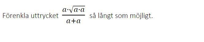 Svaret blir då a/2. lägg ihop a+a=2a. rot(aa)=a. Sedan aa/2a=a/2