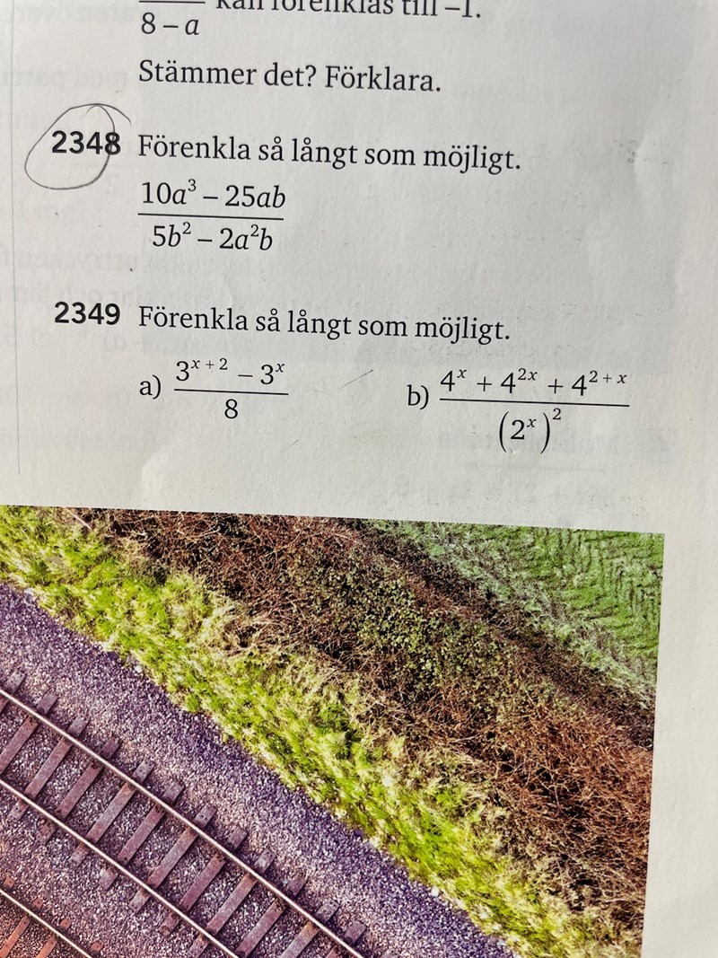 2349 a) jag har ingen aning om hur ens man kan börja. Det enda gemensamt med täljaren jag ser är 3^x men jag vet inte hur jag ska faktorisera den