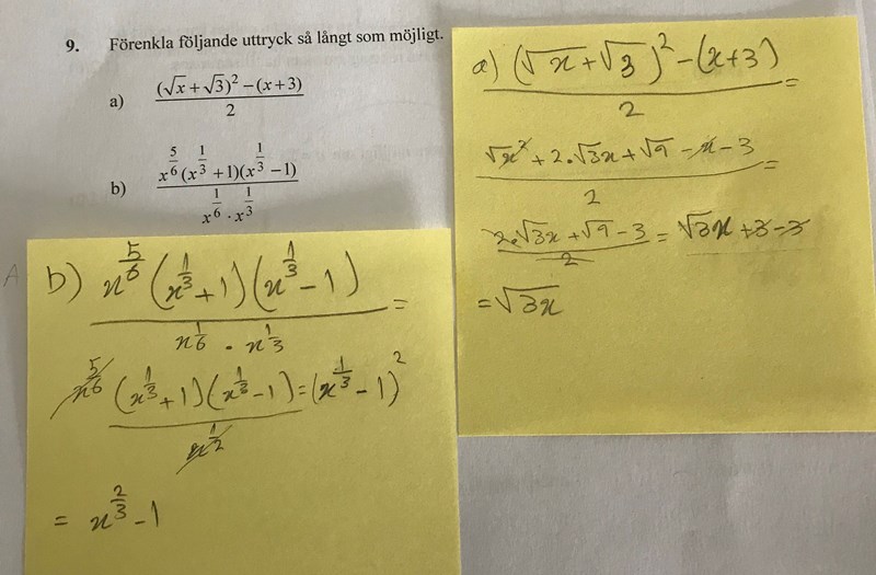 b) har du skrivit fel! anvÀnd appen photomath, sÄ kan du se varför :)