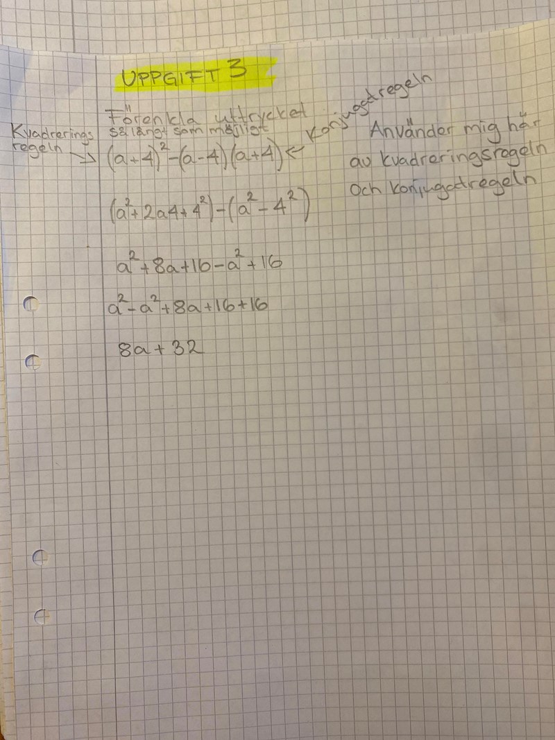 Tänker jag rätt här? Står ju i uppgiften att jag ska förenkla så långt som möjligt, ska jag då på slutet dela 8a med 8 för att få a=4? Eller e jag helt ute och cyklar ?
