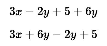 Prova med att "sortera" så att alla termer med samma variabel står bredvid varandra, då är det lättare att se vilka som ska läggas ihop: