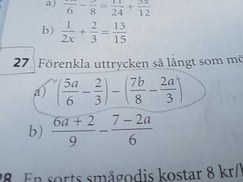 bländaren225 skrev:fast de går ju bara vid sånna tal du nyss tog som exempel. Om vi då har (5a/6) -(2/3)
