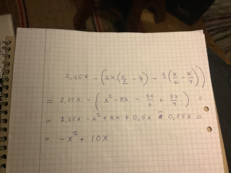 Fick det till 2.25x-x2+8x-3x/6+3x/4