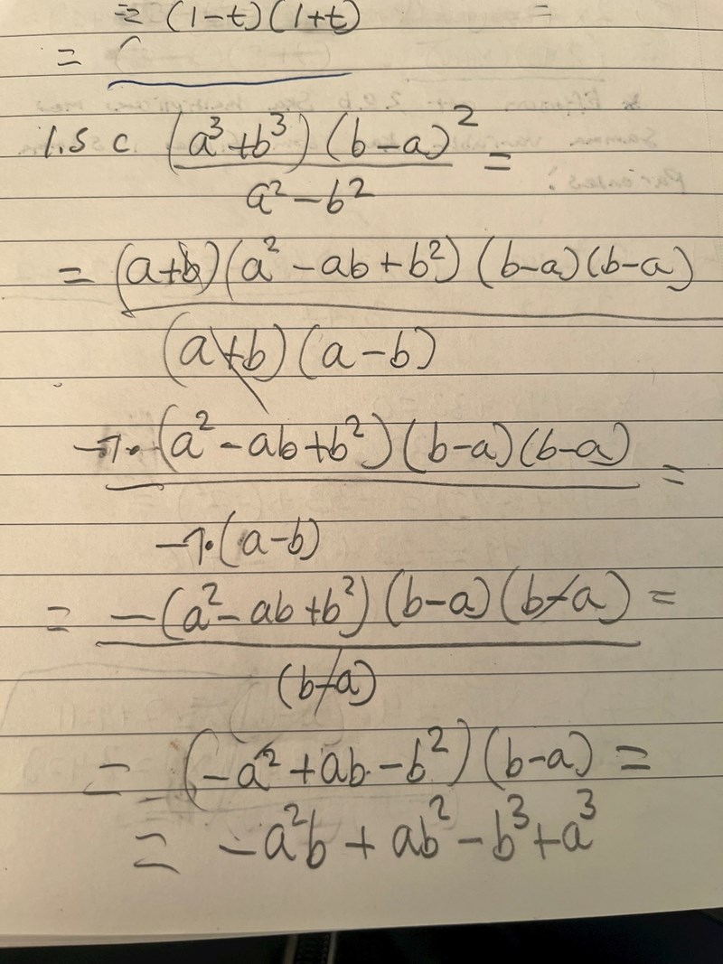 Enligt facit blir det a^3 + 2a^2b -2ab^2 - b^3