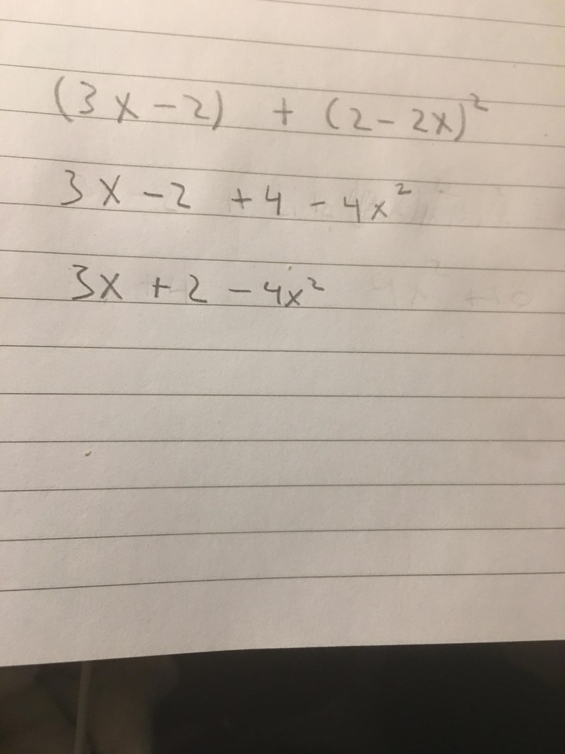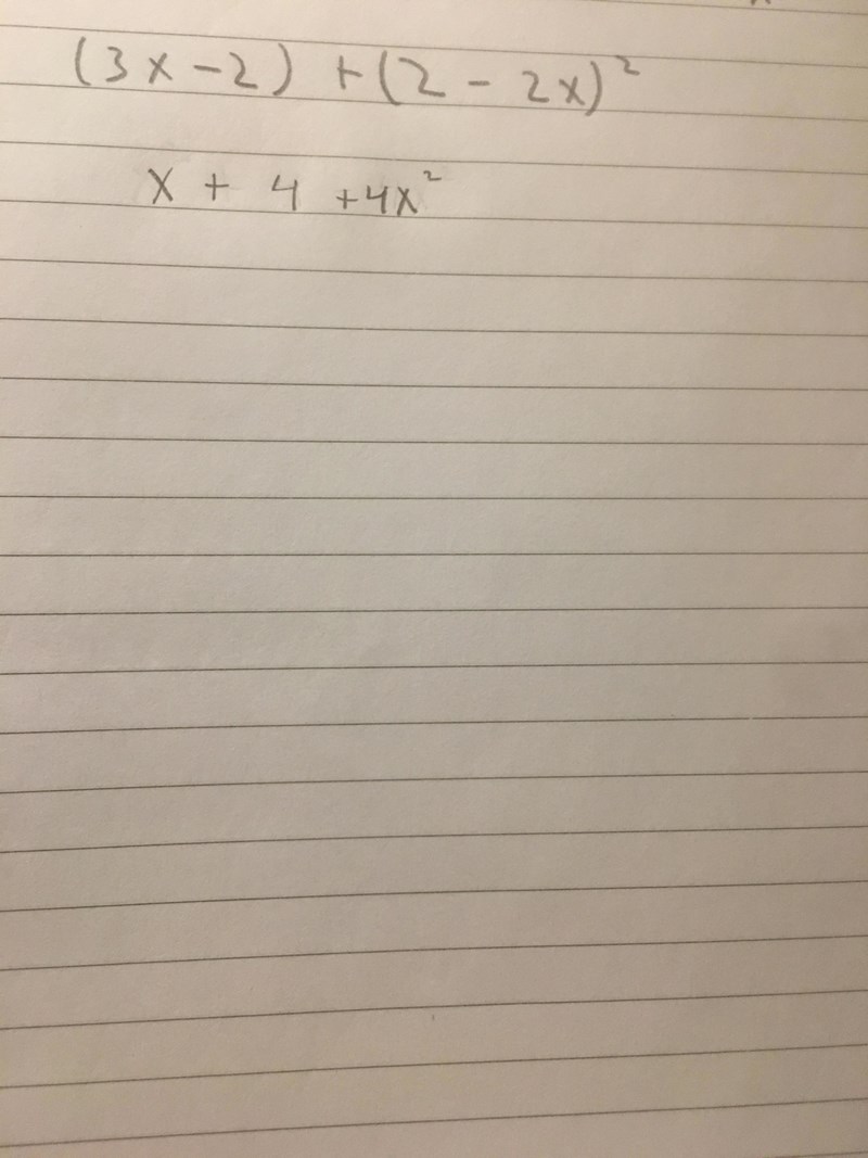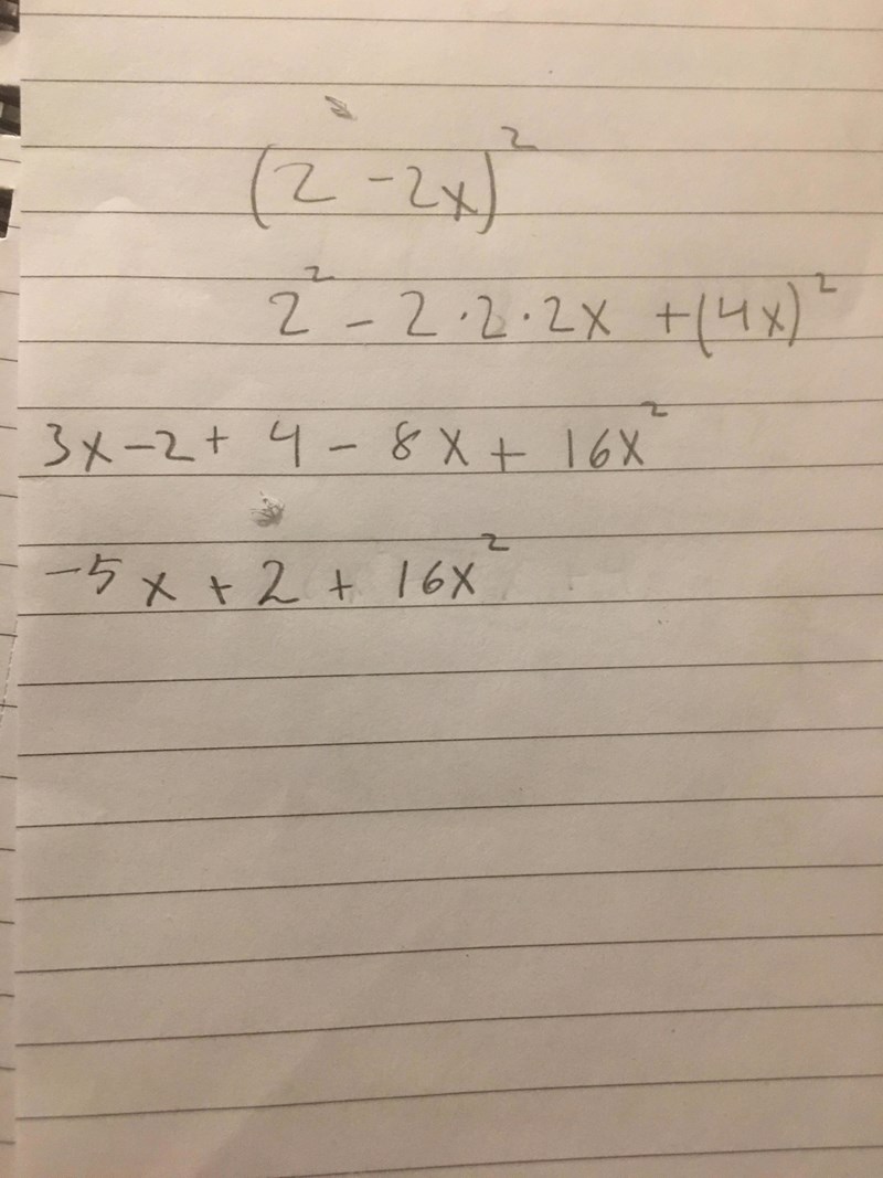 (2-2x)² = 2² + 2 × 2 × (-2x) + (2x)² = (4 -8x + 4x²)