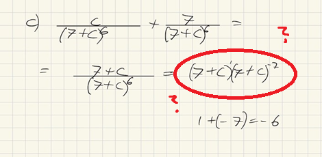 Du kan absolut lyfta upp nämnaren, men det ger inte -7 i exponenten: