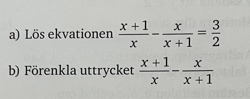 Jag håller på med a) uppgiften som du kan se nedan. Jag har kommit så här långt (se bilden nedan). Jag undrar hur jag ska gå vidare för att få fram x?