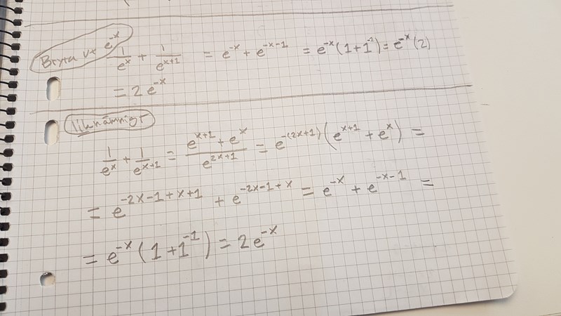 Ja. Precis som t.ex. 232·132^3\neq2\cdot1^3 så gäller att e-xe·1-xe^{-x}\neq e\cdot1^{-x}