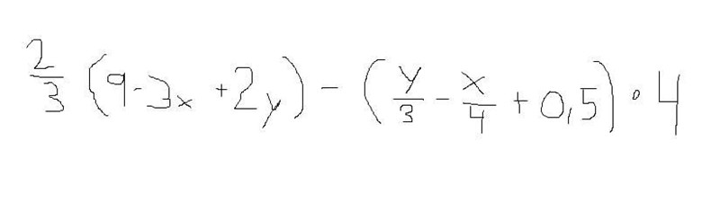 Enklast är nog att multiplicera ut parenteserna och samla ihop termer av samma sort, dvs x för sig, y för sig, och de utan x och y för sig. Sen kan man eventuella städa upp bråken om det blir några kvar.