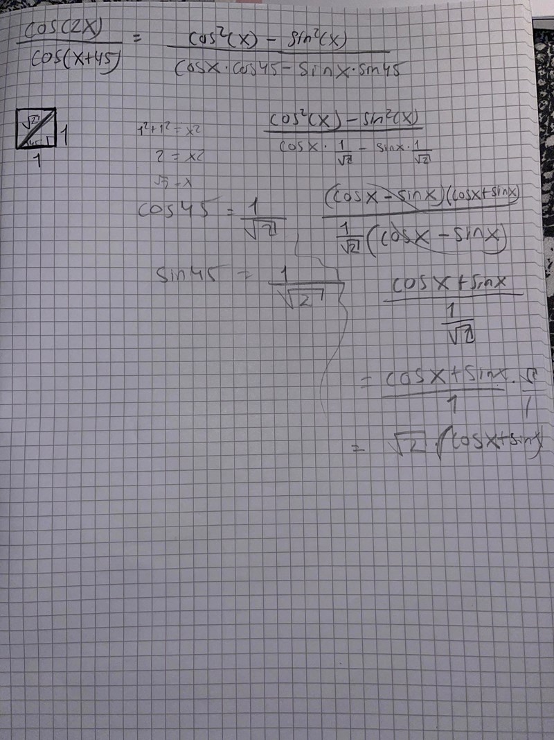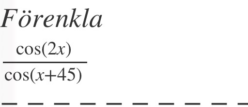 Värdet är ej definierat då x=45 för cos90 är lika med 0, och division med 0 är ej definierat