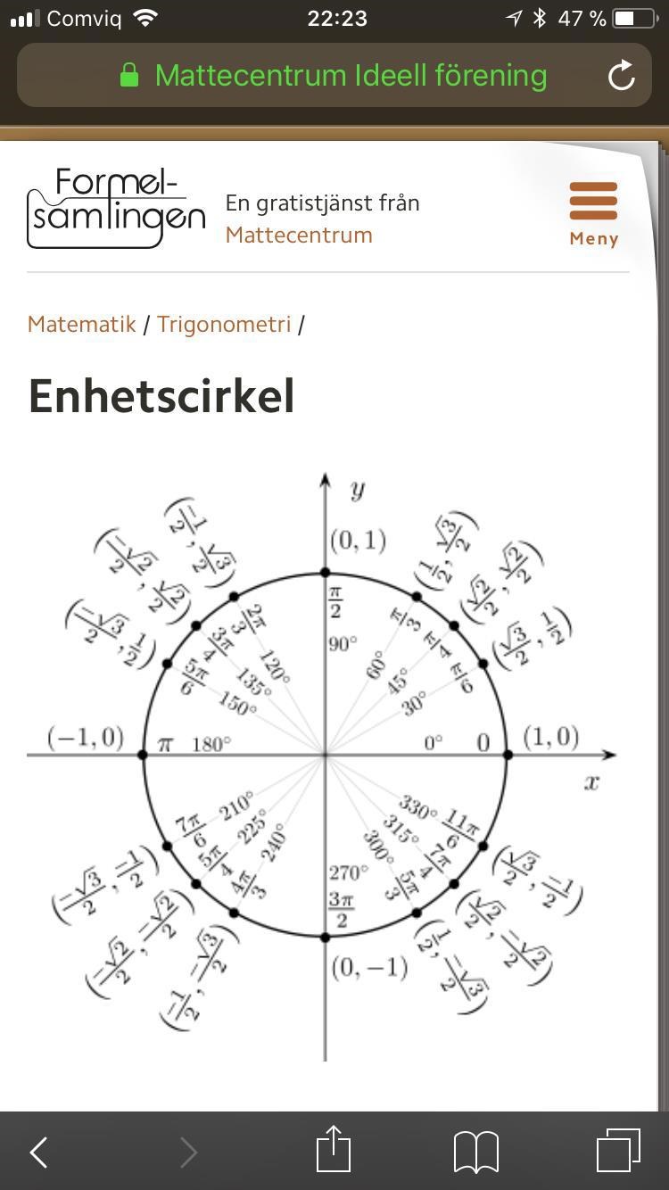 På bilden ovan (enhetscirkeln) är väl alla cosvärden positiva?