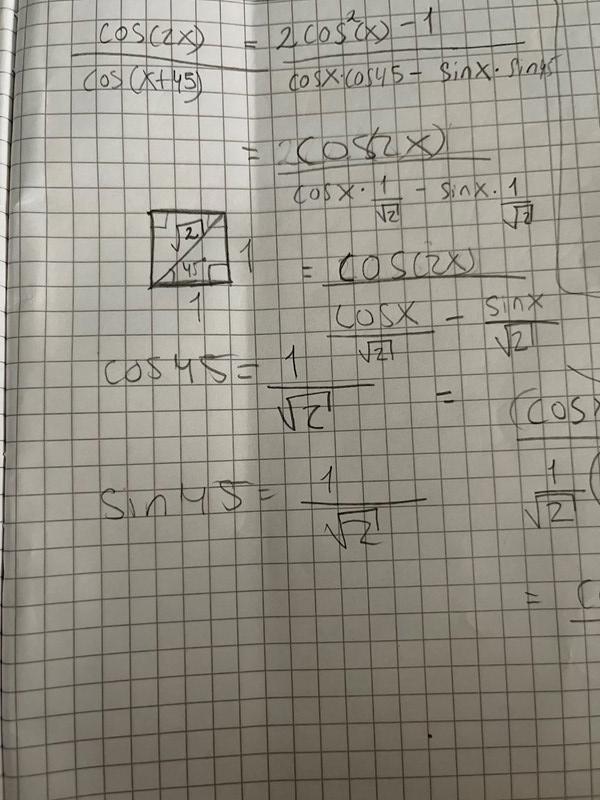 Jag har testat med att sätta in vinkeln x=90 men nu ser jag att min uträkning inte stämmer. Isåfall undrar jag vart jag har gjort fel i min uträkning?