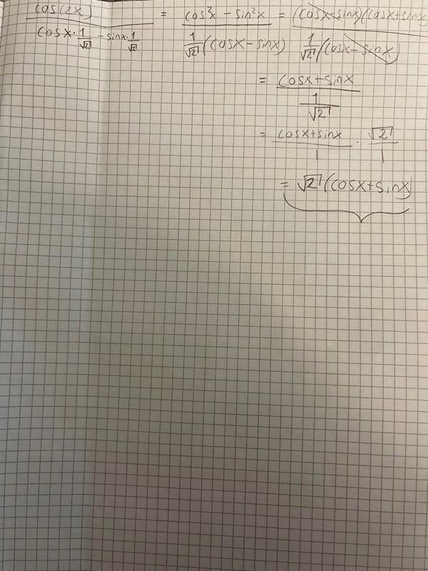 Välj för Cos2x istället att Cos2x = Cos2x - Sin2x och använd konjugatregeln.