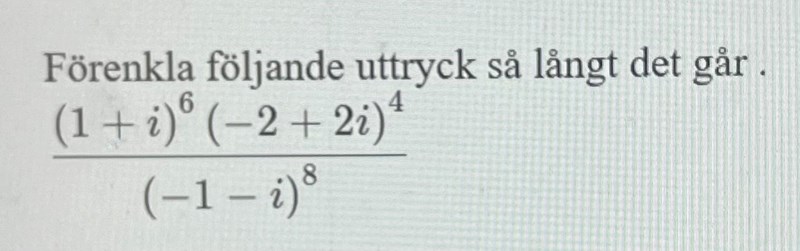 Yngve skrev:Och även på (-1-i)8
