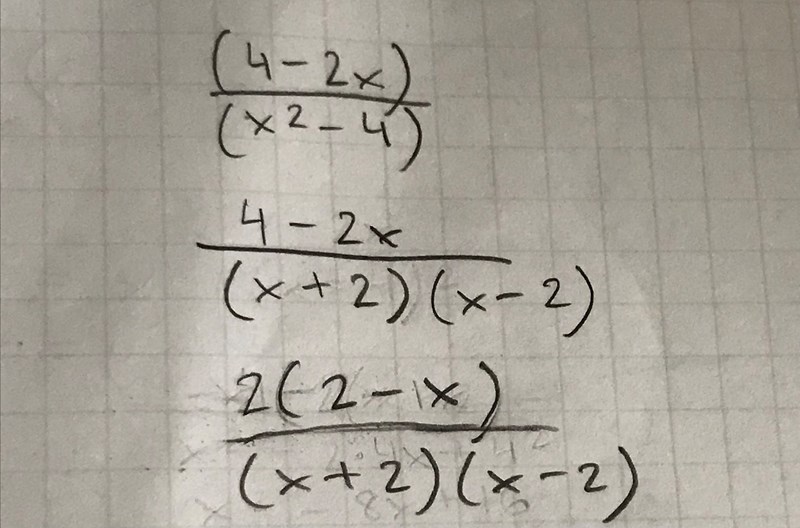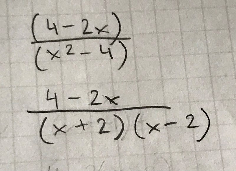 Så här ska det väl se ut, men kan man göra 4 - (x+2) på täljaren eller fungerar det ej?