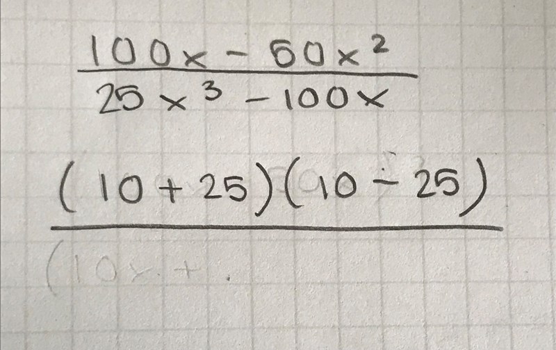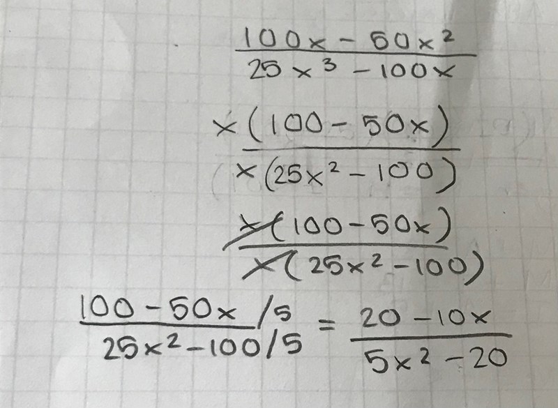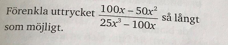 Om du tittar på uppgiften igen kan du se att du kan bryta ut 50x i täljaren och 25x i nämnaren: