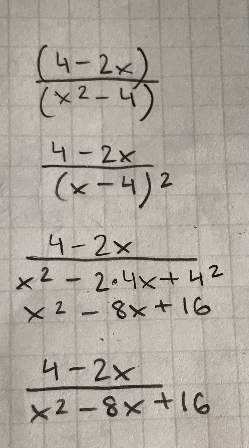 Menar du att x2-4 och (x-4)2 är samma sak?