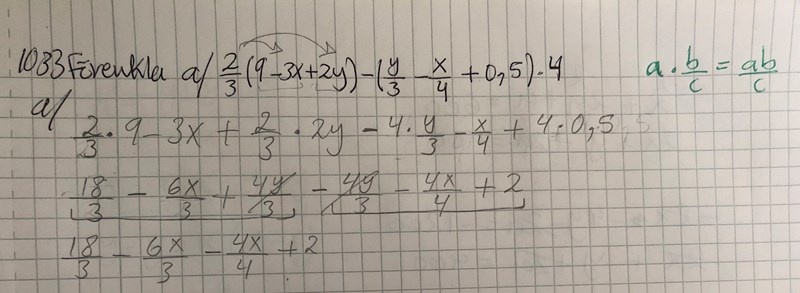 Du bör först multiplicera in 2/3 i parentesen med alla termer där och sedan då eventuellt multiplicera in 4 i den andra parentesen (om det skulle vara så).