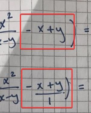 Minustecknet i första steget sitter bara på x:et, men sen sitter det framför hela bråket. Då byter du alltså tecken även på y:et, vilket förändrar uttrycket. Så det borde bli: