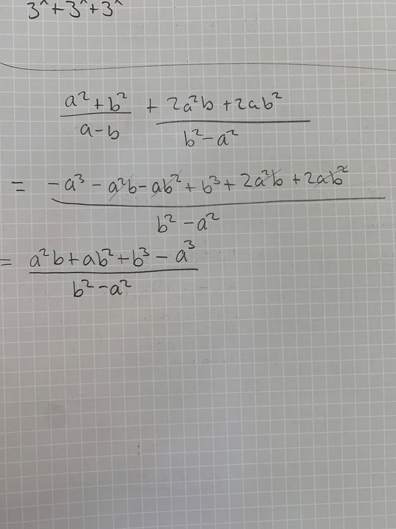 Nu får du klura ut om du kan bryta ut faktorn (b2-a2) ur täljaren? Då blir det i så fall mycket roligare (och det går, försök)