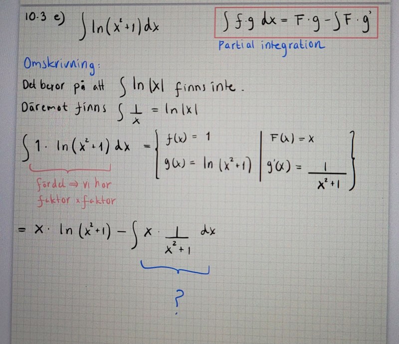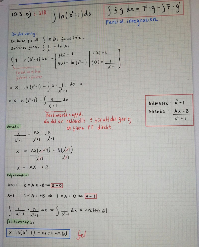 Jag har använt i början partiell integration och sedan när jag inte kunde lösa integralen blev jag tvungen att använda partialbråksuppdelningen.