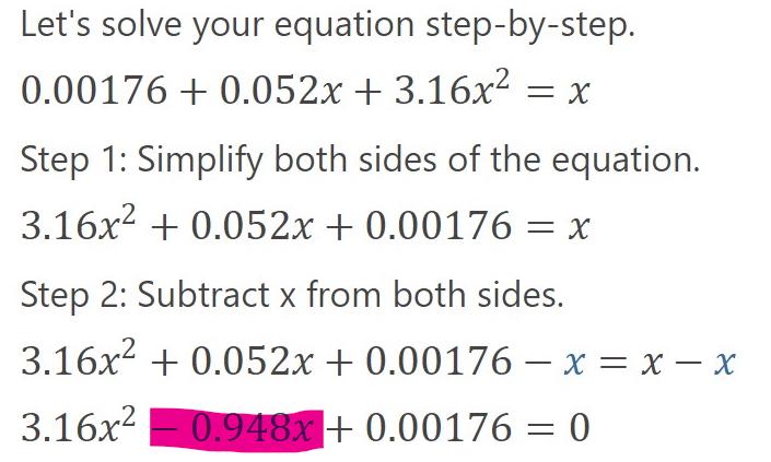 Jag undrar om någon kan hjälpa mig förstå hur värdet (markerat) ändrades genom att subtrahera x från båda sidorna?