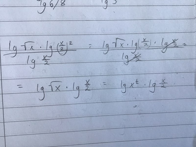 lg(x2)2=lg(x2)·lg(x2)\lg(\frac{x}{2})^2 = \lg(\frac{x}{2}) \cdot \lg(\frac{x}{2})