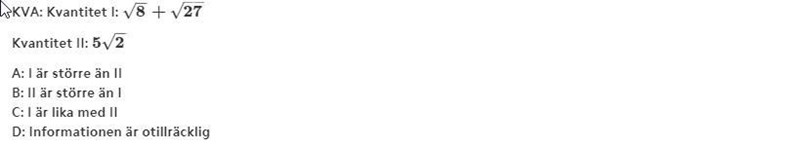 Då tänkte jag naturligt att kvantitet 2 är större än 1. svar B