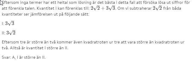 Jag förstår inte riktigt hur denna uträkning går till, känns som några steg saknas, eller gör det? Behöver hjälp med hur man ska gå tillväga när man skriver om och sedan subtraherar 2gånger roten ur 2 från båda kvantiteter!