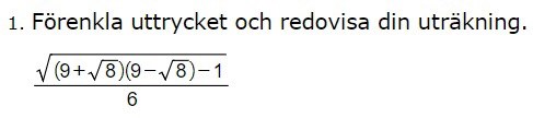 När du har beräknat detta, beräkna summan av täljaren och fundera på hur du kan förenkla uttrycket samt hur 6:an i nämnaren kan strykas.
