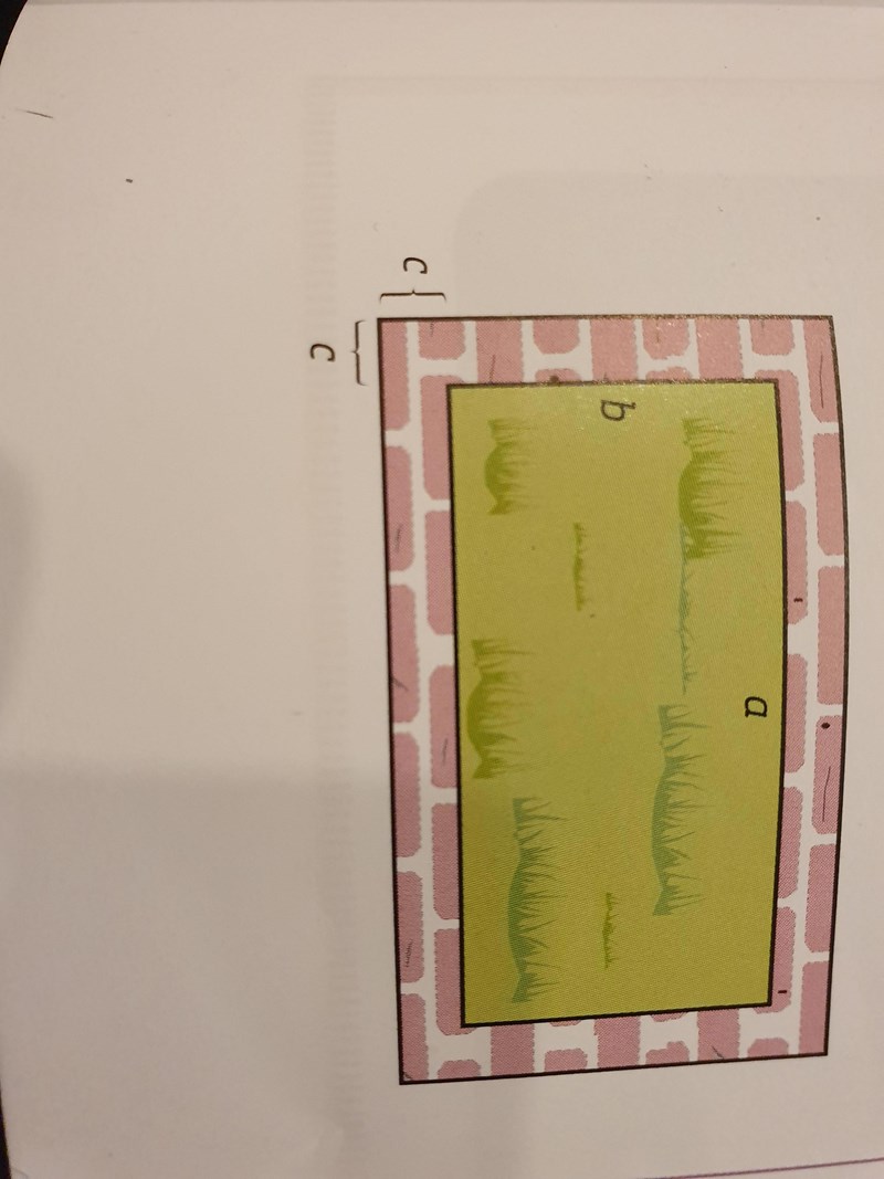 bilden visar en gräsmatta med längden a och bredden b. runt gräsmattan finns en gång med stenplattor som har bredden c. a) teckna ett uttryck för gångens area. förenkla uttrycket så långt som möjligt. b) använd det förenklade uttrycket och beräkna gångens area om a= 18 m, b= 12 m och c= 1,5 m.