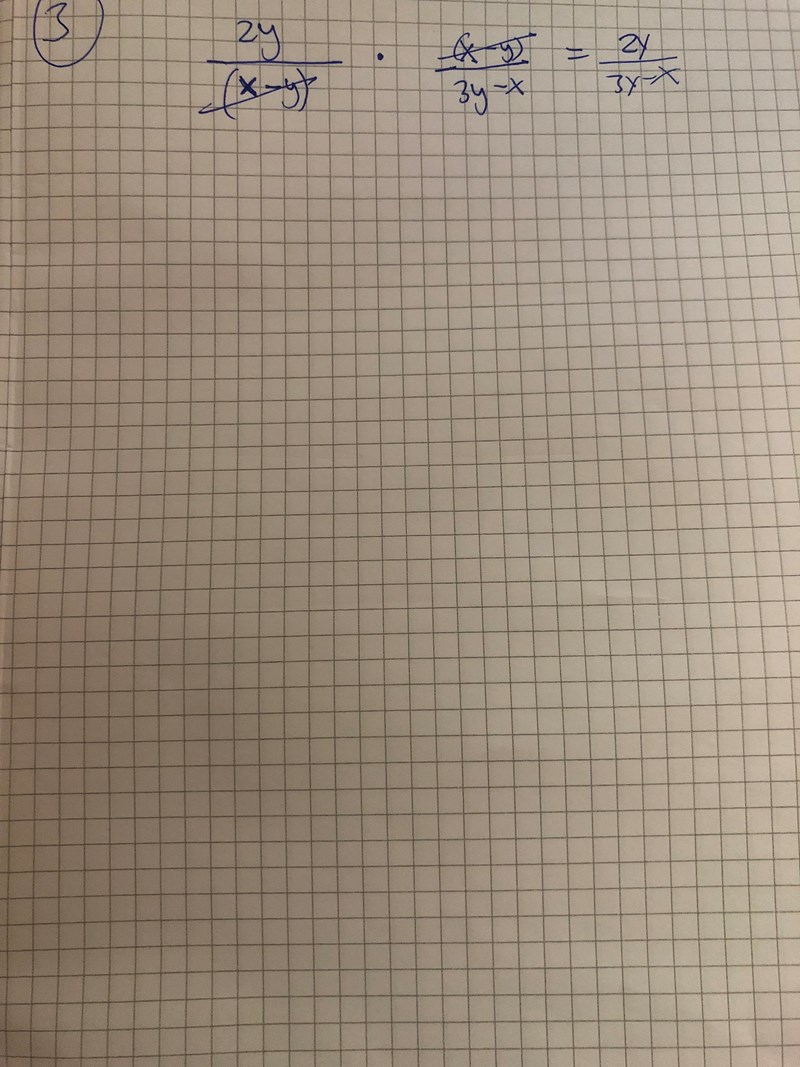 Du borde förlänga andra termen i täljaren med (x-y), annars får du inte samma nämnare på det bråket som på den första termen i täljaren. Du har gjort fel redan på första raden, så det är inte lönt att undersöka om du gjort fel längre ner på den sidan.