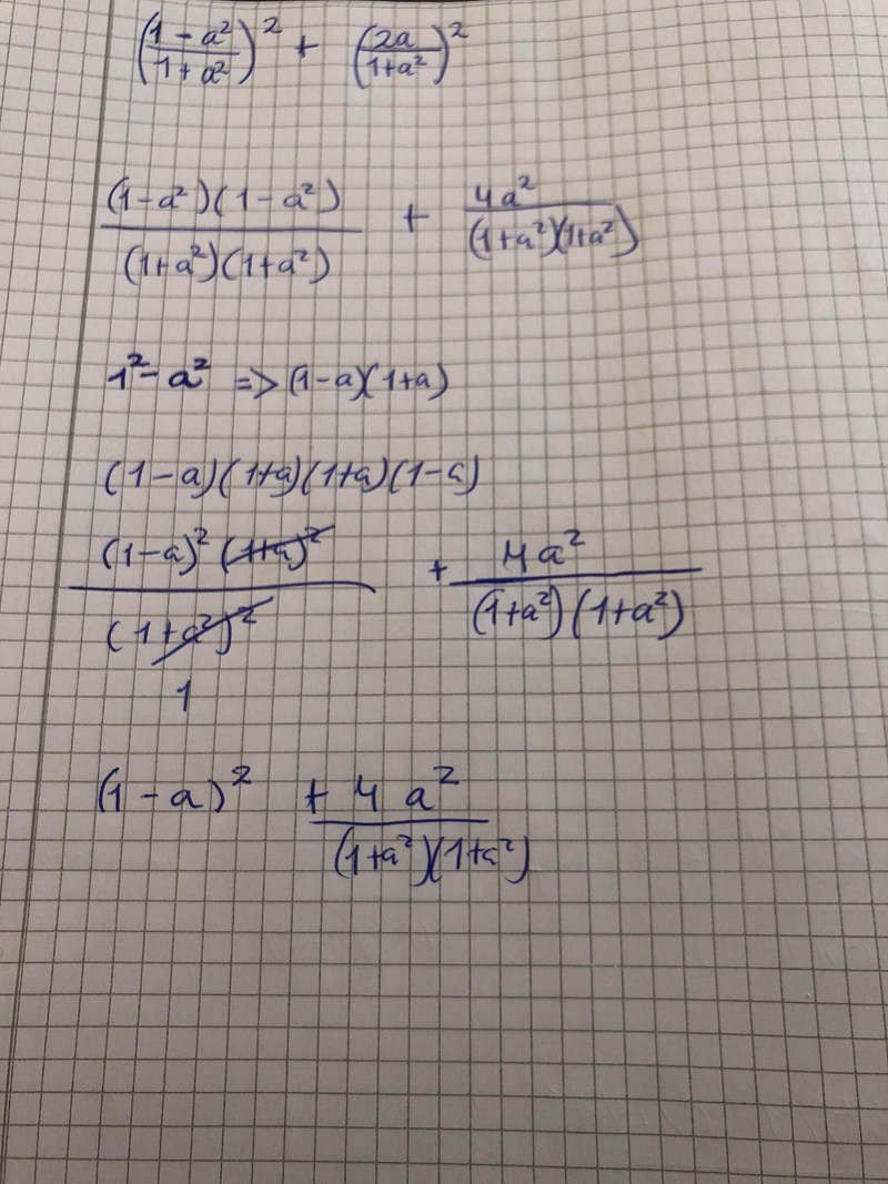 Jag tror att du tar ett snedsteg när du förenklar bort nämnaren. Vad händer om du utvecklar täljaren istället? :)