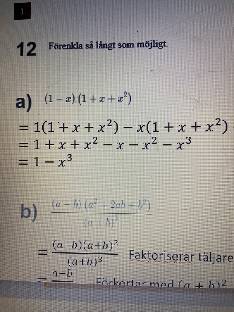 Det jag gjorde var att skriva om allt i utvecklad form och fick svaret -x^3+1. Om jag skulle ha multiplicerat skulle jag få samma svar som facit men skulle ni säga mitt svar är rätt?