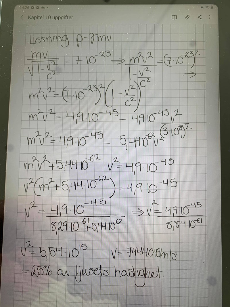 Förenkling m^2v^2 = p^2 *(1-(v^2/c^2)