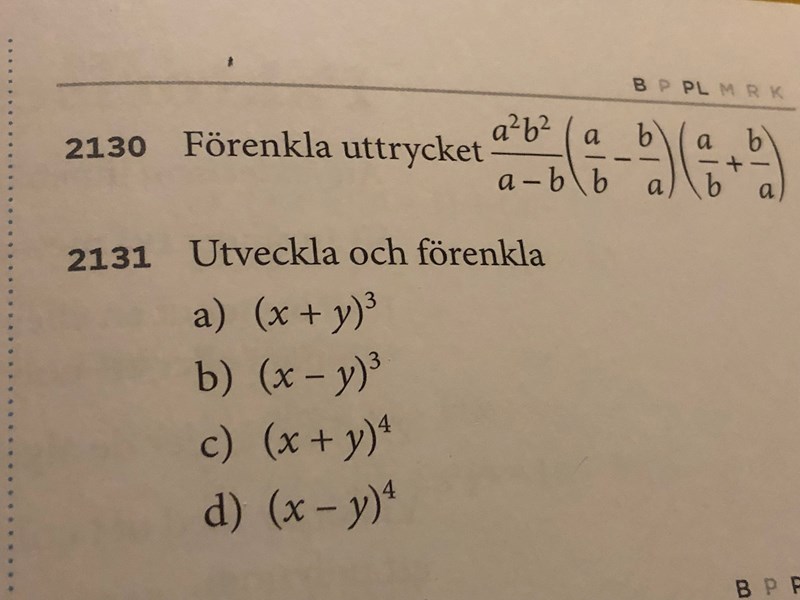 Hej, jag har lite problem med uppgift 2130. Jag ser att jag kan använda konjugatregeln på de två sista parenteserna, men ser inte hur jag kommer vidare. Något tips?