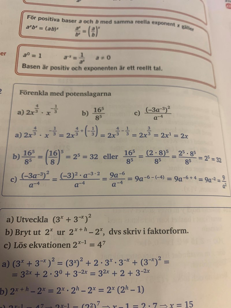 Jag höll på att lösa C) uppgiften när jag i slutet såg att svaret inte var 9a^-2 utan istället 9/a^2.. är det helt enkelt för att göra om den negativa upphöjda 2an till en positiv 2a som man valde att göra så?