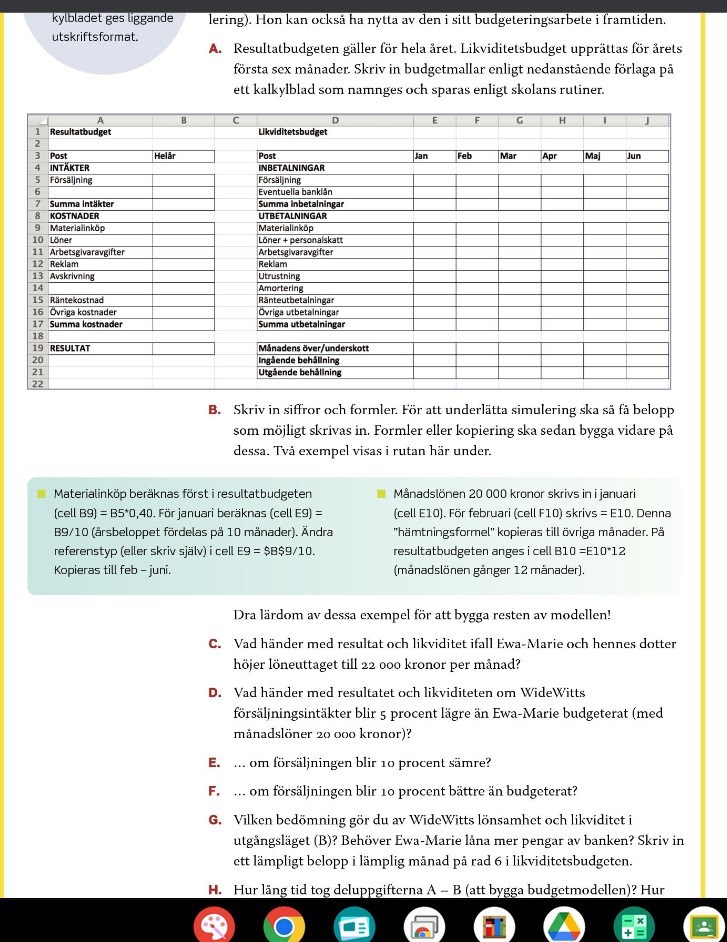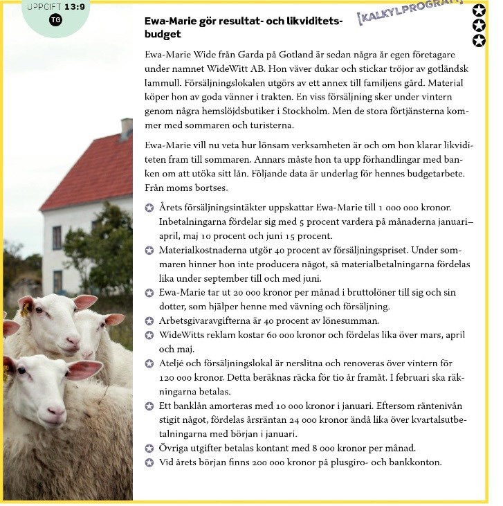 Företagsekonomi 1, Liber. Kapitel 13, Ewa marie gör resultats- och likviditetsbudget