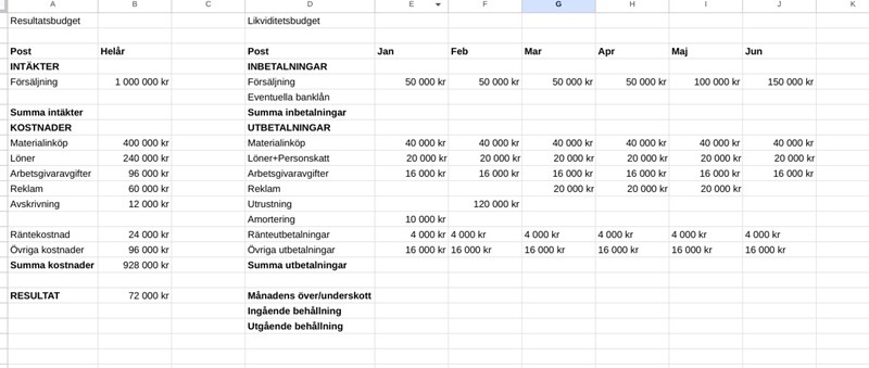 Kolla varje post i resultatbudgeten så den stämmer med texten
