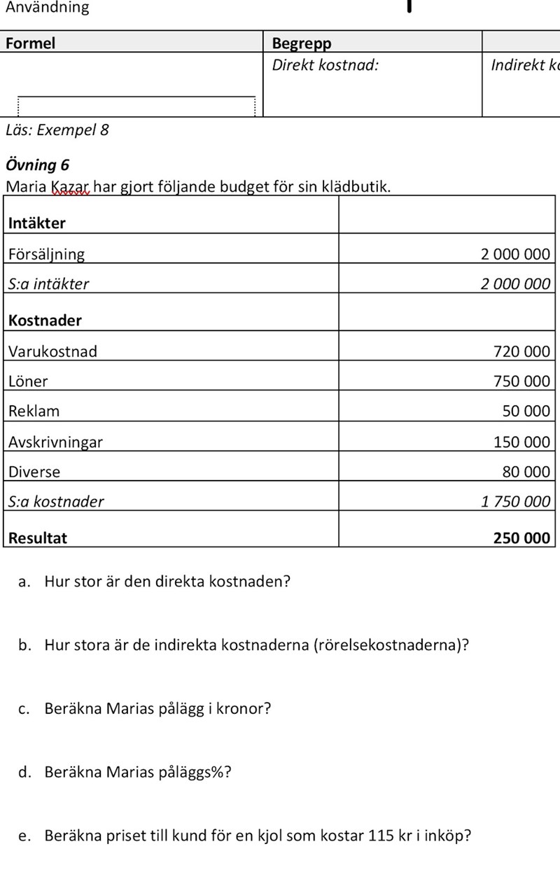 Företagsekonomi pålägg - uppgift 2