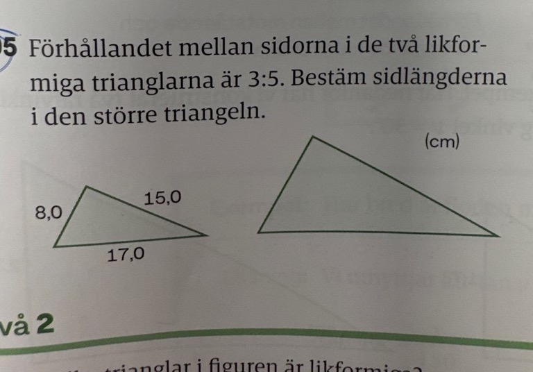 mår förhållandet mellan sidorna mellan trianglarna? Och hur ska jag isf gå tillväga för att lösa detta? Står helt stilla, trots att man har löst tusentals liknande uppgifter tidigare.