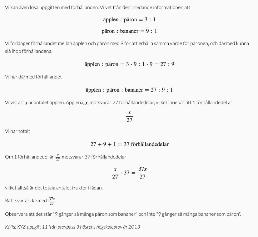 1/27 : 9/27 : 1 där 1 är äpplen, tar vi nu x äpplen får vi