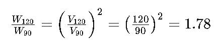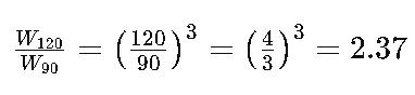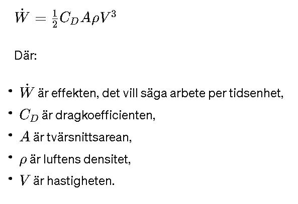 Detta betyder att arbete (och därmed bränsleförbrukning) ökar med en faktor av 2.37 när hasigheten ökar från 90 km/h till 120 km/h.