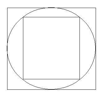 Jag tror frågan är felställd. Om du har en kub i en sfär som är i en kub så kan du inte få ett snitt som ser ut som på bilden. Normalt används denna bild för att diskutera ett tvådimensionellt problem där man har en kvadrat i en cirkel som är i en annan kvadrat.