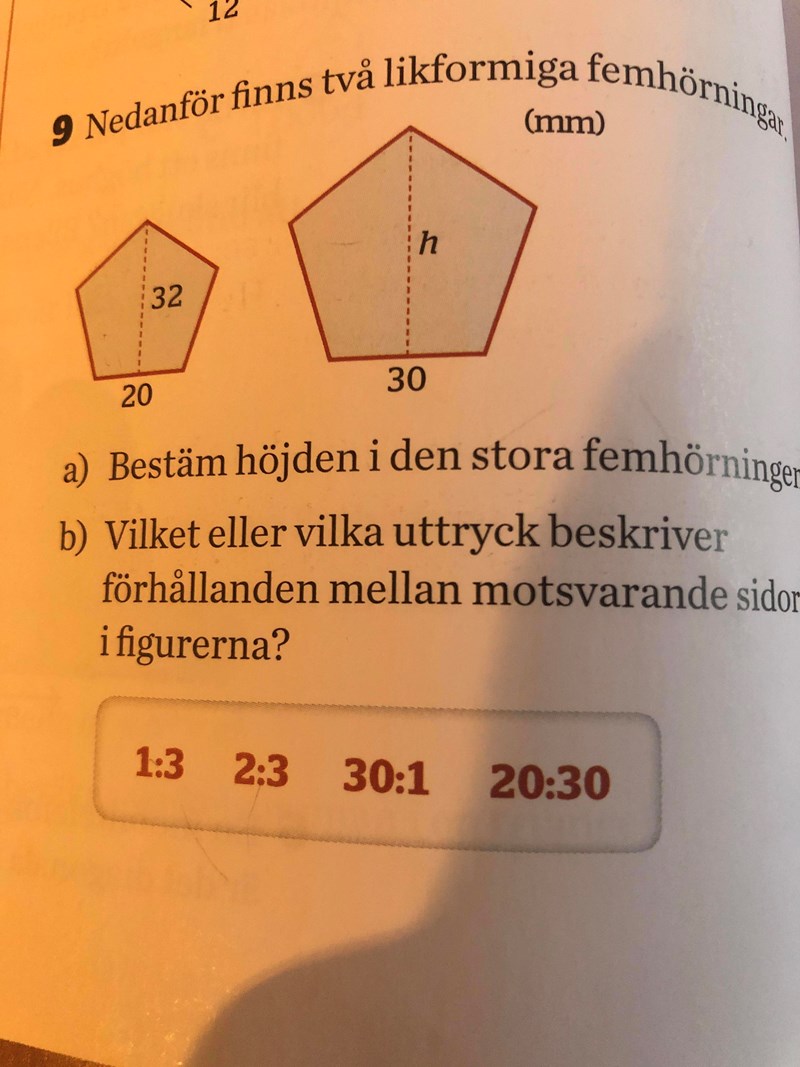 Hur beskriver man förhållandet mellan sidor i två t.ex sexhörningar? Alltså fråga b)