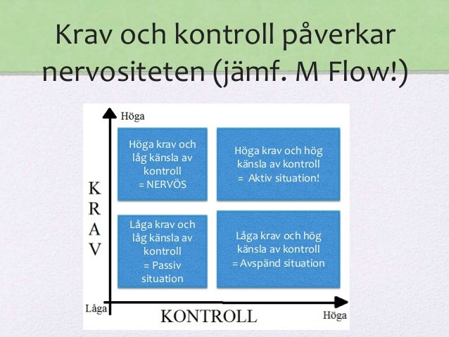 Om vi istället går vänster i x-led och inte så mycket i y-led, så kommer vi att ha låga krav medans vi har en hög kontroll vilket bland annat leder då till en avslappnad situation.