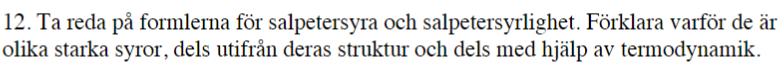 Förklara termodynamiskt varför salpetersyra och salpetersyrlighet är olika starka syror