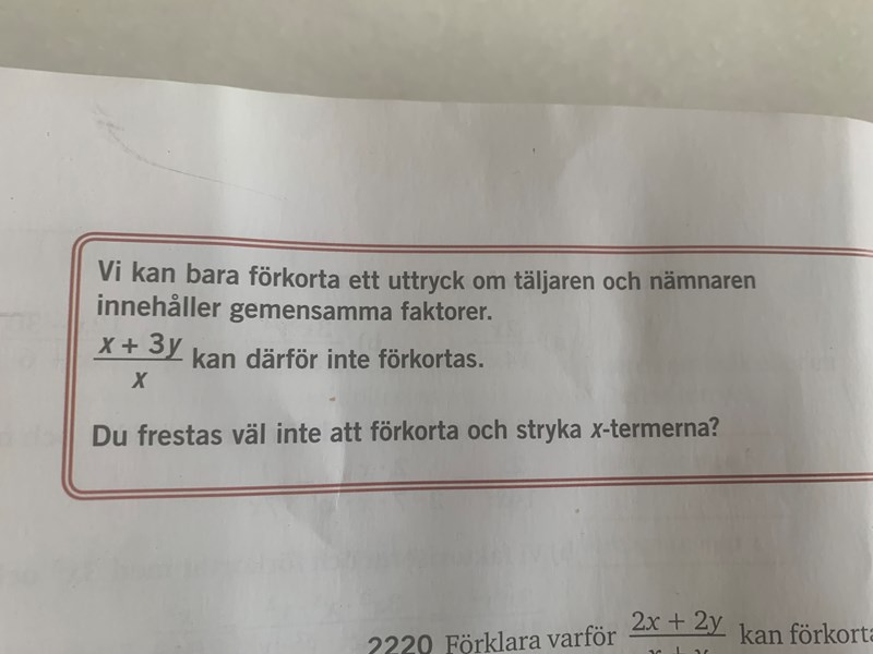 ja men man får inte förkorta bort allt det står ju så i matteboken'????